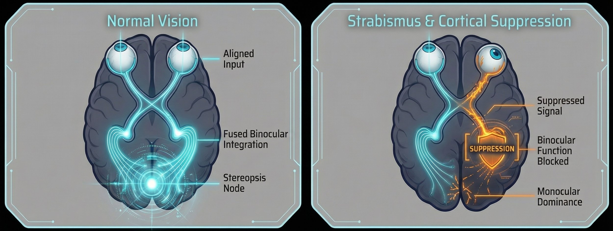 To compensate, the brain actively suppresses vision in the deviating eye.